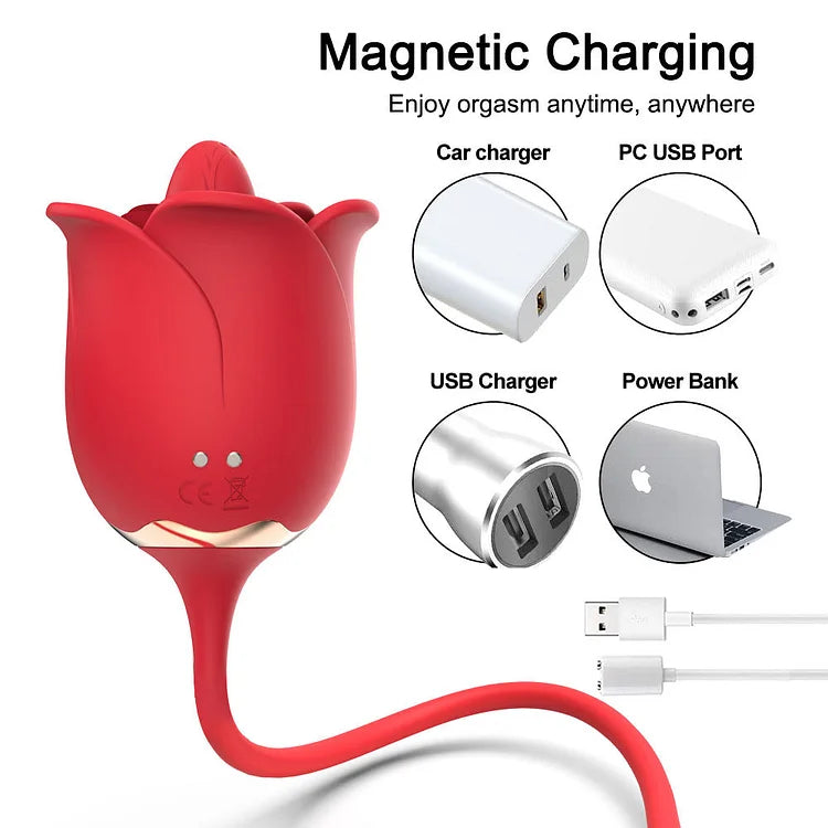 - Clitoral Tongue Licking Vibrator with a bullet :The Rose Vibrator combines the licking & vibration to create really nice sexual pleasure. Stimulating the labia, vagina, anus as well as nipples, breast, more than a real blowjob to arouse your deepest sexual pleasure.